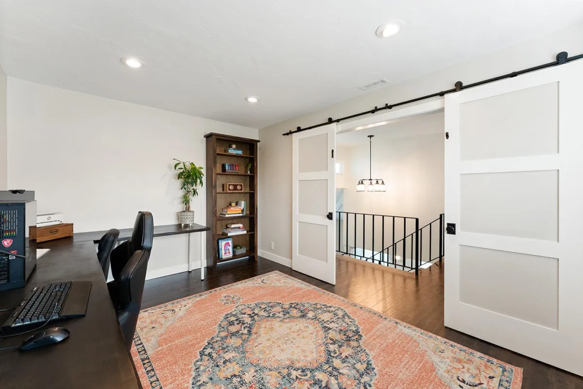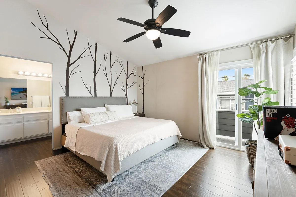 Upstairs, the spacious primary suite offers vaulted ceilings, a private balcony, walk-in closet, and an ensuite bath. The two additional bedrooms are generously sized and each features its own walk-in closet—one with a second balcony for added charm.